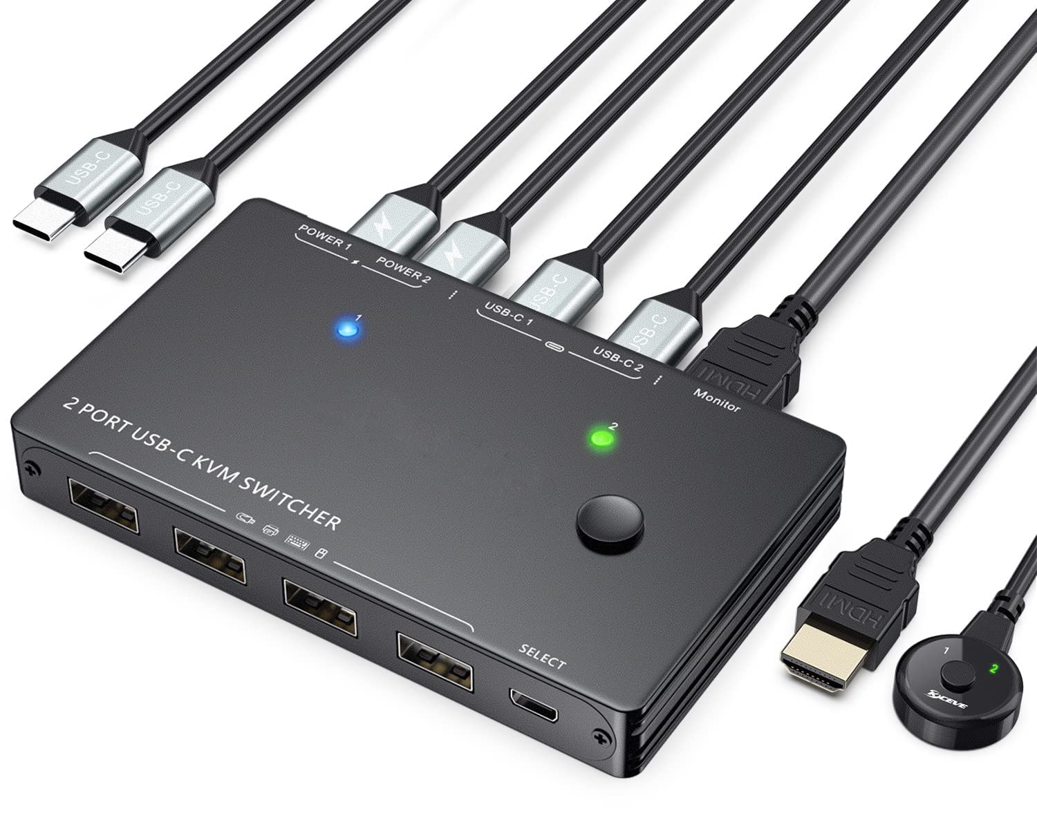 KVM切替器 2入力1出力 HDMIモニター ES-Tune USB切替器 4K@60Hz 手動式 電源不要 タイプC端子採用 EDID管理 USB2.0 USBケーブル付属