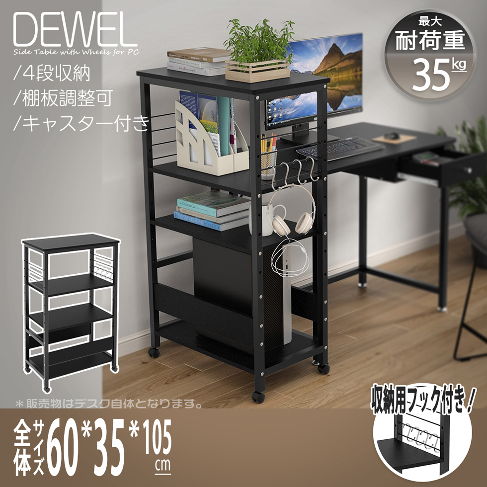 デスクサイドワゴン 数量限定キャンペーン 幅60 ラック プリンターワゴン DEWEL CPUスタンド PC本体収納 キャスター付 4段 PCワゴン 高さ105