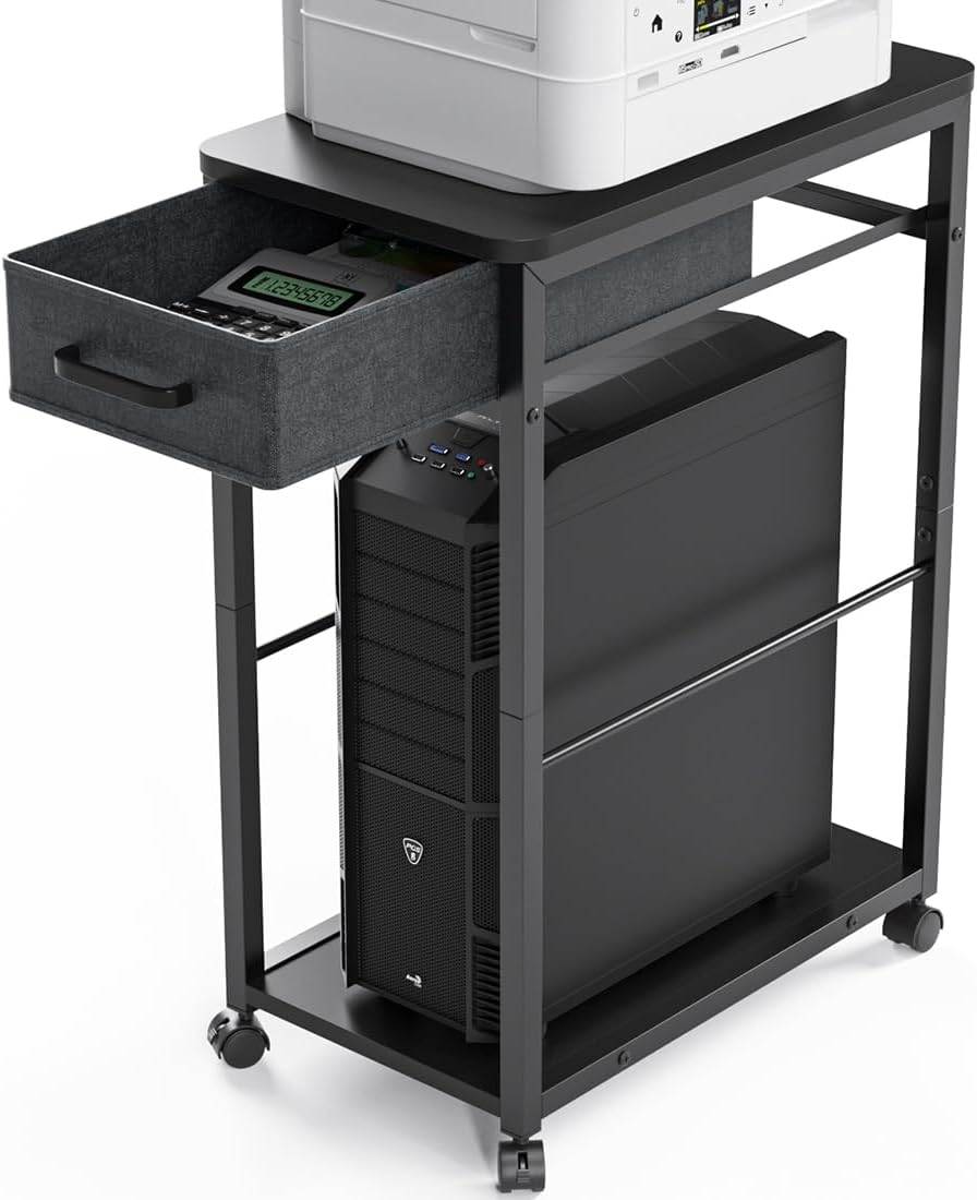 こちらのパソコンワゴンは布製の引き出しがついて、ペンやノートやメモ帳などのオフィスの小物を収納することができます。