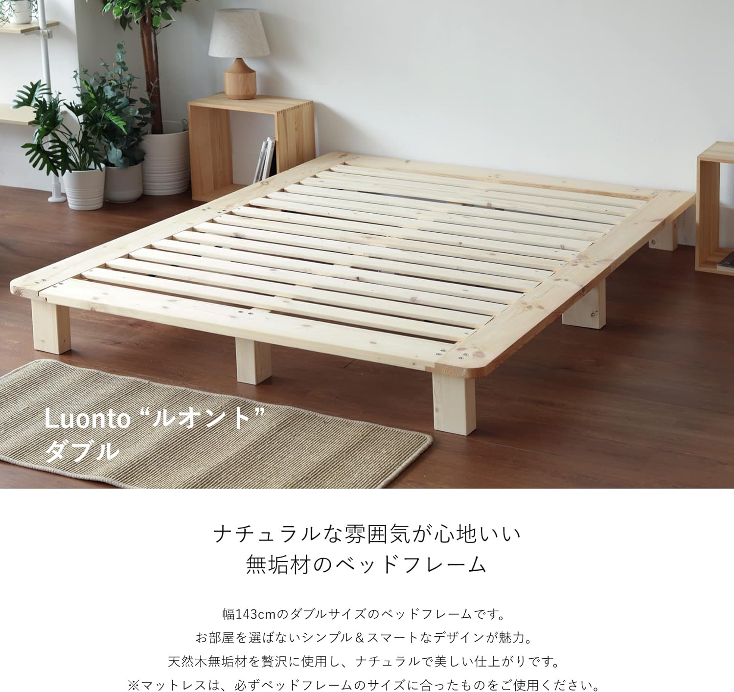 ベッドフレーム ダブルベッド すのこ 無垢材 ベッド 組み立て式ベッド DEWEL 天然木 幅143cm ナチュラル ヘッドレス ヘッドボードなし ノーブランド品