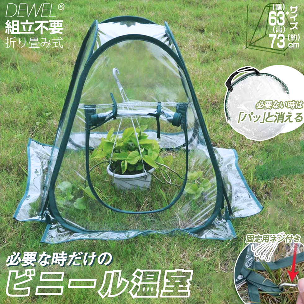 ビニールハウス 折り畳み式 使い勝手ビニール温室 蚊帳温室 テント式 組立不要 DEWEL 防水 虫よけ ガーデンハウス 園芸用 ガーデン温室 防寒 花 野菜 栽培
