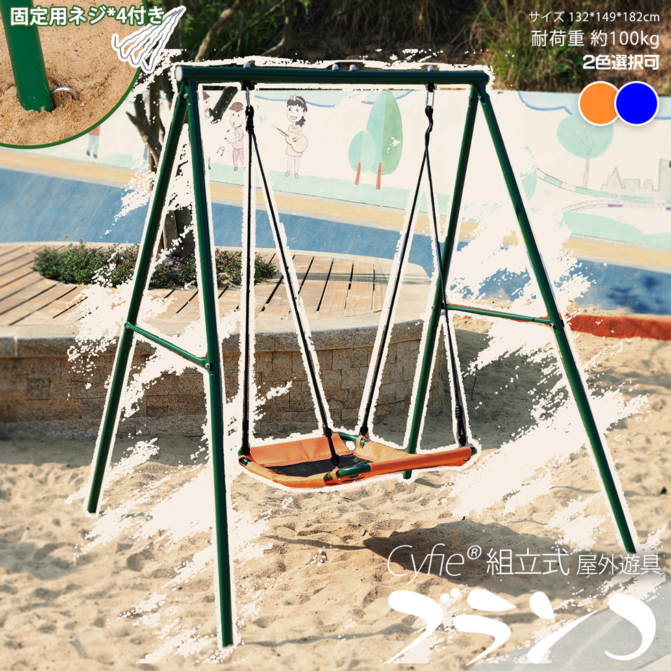 ブランコ 屋外 用 組み立て簡単 1人位 座面2色選択可 小さい庭でも ぶらんこ Cyfie 屋外遊具 アウトドア 鉄棒 ぶら下げ 滑り止め A型フレーム金属製 子供遊び
