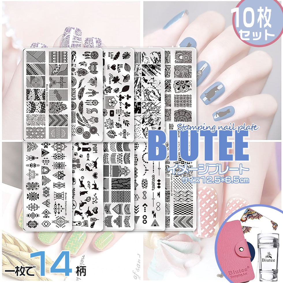 [29日-1日限定10倍P付] ネイルイメージプレートセット 10枚セット Biutee 1スタンプ 1スクレーパー ネイルステンシル スタンピングイメージプレート