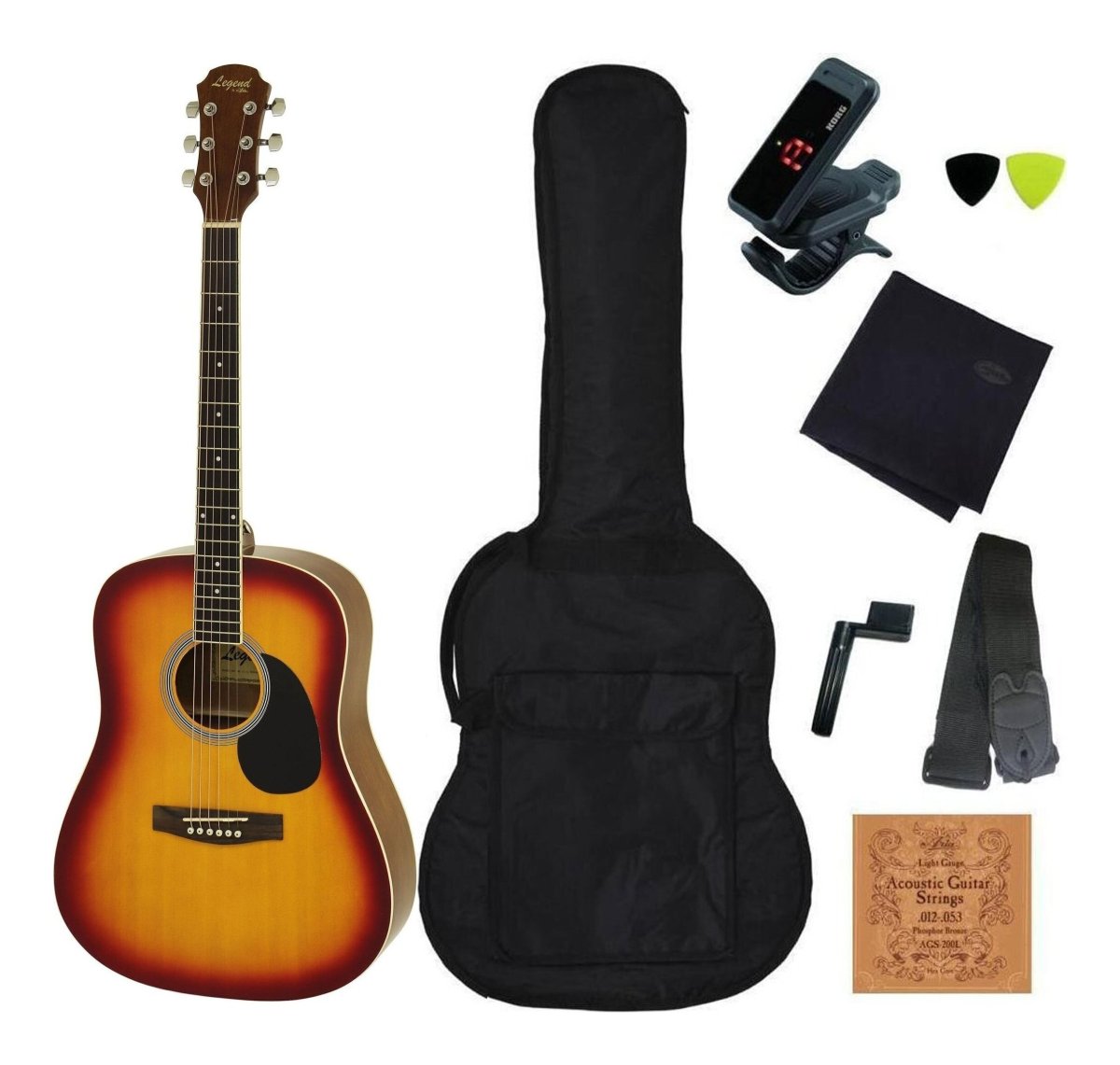 ※画像は撮影用商品のため、お届けの際の商品とは異なります。こちらの商品は一部の地域*を除き送料無料(送料込)です。*離島地域・北海道・沖縄へのお届けは別途、送料が必要になりますので、ご注文の前にご連絡下さい。送料をお知らせいたします。★セット内容★ ギター本体:Legend WG-15 ソフトケース:付属品 チューナー:KORG pitchclip ストラップ:ギターを肩にかける為のものです。 クロス:本体を拭く布です。 ストリングワインダー:弦を巻く道具です。 ピック2枚:弦を弾くものです。消耗品です。 スペア弦:弦は定期的に交換しましょう。 // 高いコストパフォーマンスが自慢のレジェンドアコースティック。WG-15はスタンダードなドレッドノートタイプ。初めてギターを触る方へはもちろん、気軽に弾けるギターが欲しい方へもお勧めです。 SpecificationsTop: Spruce Back&Side: AgatisNeck: CatalpaFingerboard:Rosewo