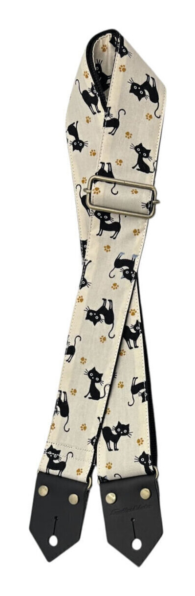 SpiceNote ES-PP50BC/WHT BLACK CAT 黒猫柄 ギターストラップ/メール便発送・代金引換不可