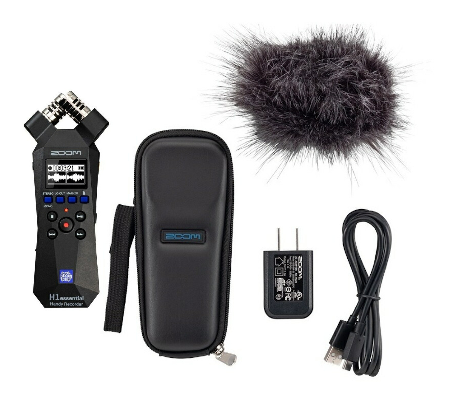 ★セット内容★ 本体:ZOOM H1essential アクセサリパック:ZOOM APH-1e(ヘアリーウィンドスクリーン、H1essential専用ソフトシェルケース、ACアダプタ、USB-Cケーブル) // 32bitフロート録音を、すべてのクリエイターに世界一簡単なレコーダーが、さらに簡単にミュージシャン、ポッドキャスター、映像作家など、あらゆるコンテンツクリエイターに最適なハンディレコーダー。32bitフロート録音機能を持つ『H1essential』なら、RECボタンを押すだけで、誰でも簡単に高音質なステレオ録音が行えます。32bitフロートの魔法32bitフロート録音なら、レベル調整の必要がありません。『H1essential』は、音のニュアンスを余すことなく捉え、どのテイクでも高品質なオーディオを録音します。アクセシビリティを備えたレコーダーEssentialシリーズは、視覚障がい者のためのアクセシビリティを考慮して設計されました。内蔵スピーカーやヘッドフォンを通して、設定メニューを音声で読み上げます。英語、スペイン語、フランス語、日本語、ドイツ語、イタリア語、中国語での