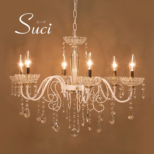 【LED対応 E12/40W水雷型】クリスタルガラス シャンデリア SUCI スーチ(6灯)