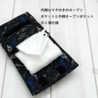 ポケットはマチ付きのオープンポケットと外側ポケット、背面にティッシュ入れがついていて、