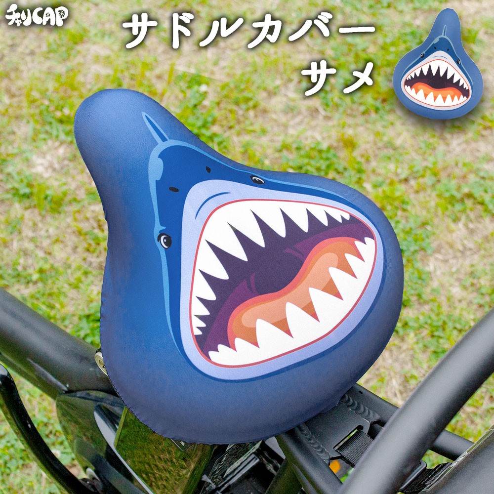 一般サイズのサドルも、大型サイズ/電動アシスト自転車のサドルにも対応したフリーサイズのとっても便利なサドルカバーに、迫力の「サメ」が登場しました!