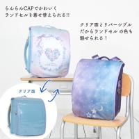 デザイン面と透明・クリア面が1つになったリバーシブルタイプのランドセルカバー「ランドセルカバー らんらんCAP リバーシブル and クリア 星座 フラワーハート」です。