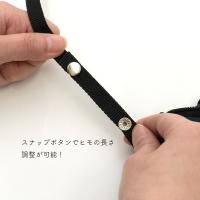ショルダーは強く引っ張られると外れる安全機能付き。スナップボタンで長さ調節も可能です。