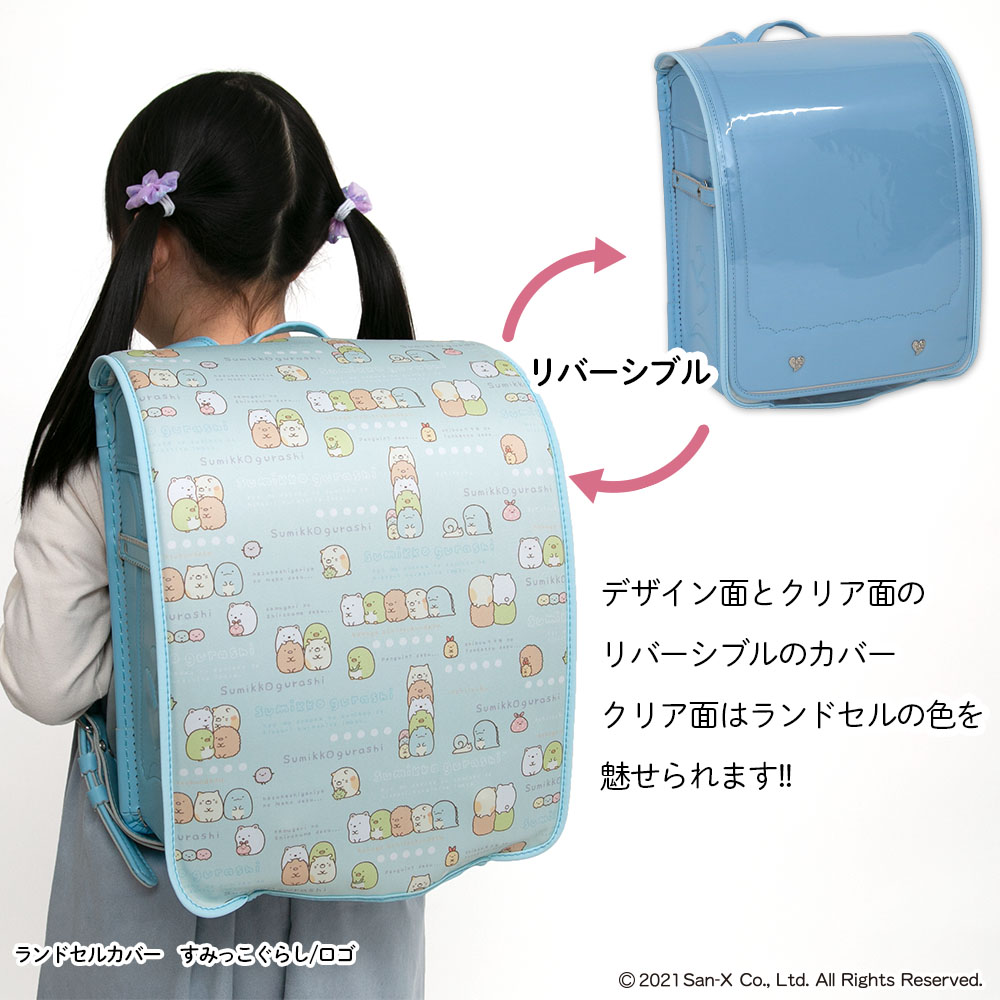 デザイン面と透明・クリア面が1つになったリバーシブルタイプのランドセルカバー「ランドセルカバー らんらんCAP リバーシブル and クリア」