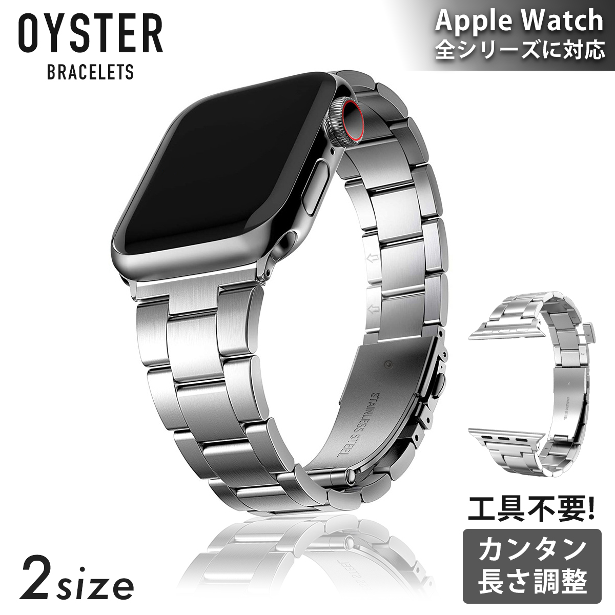 Apple Watch アップルウォッチ ステンレス製バンド シルバー オイスターブレスタイプ メタルリンクブレスレット Series10対応 スターライト追加