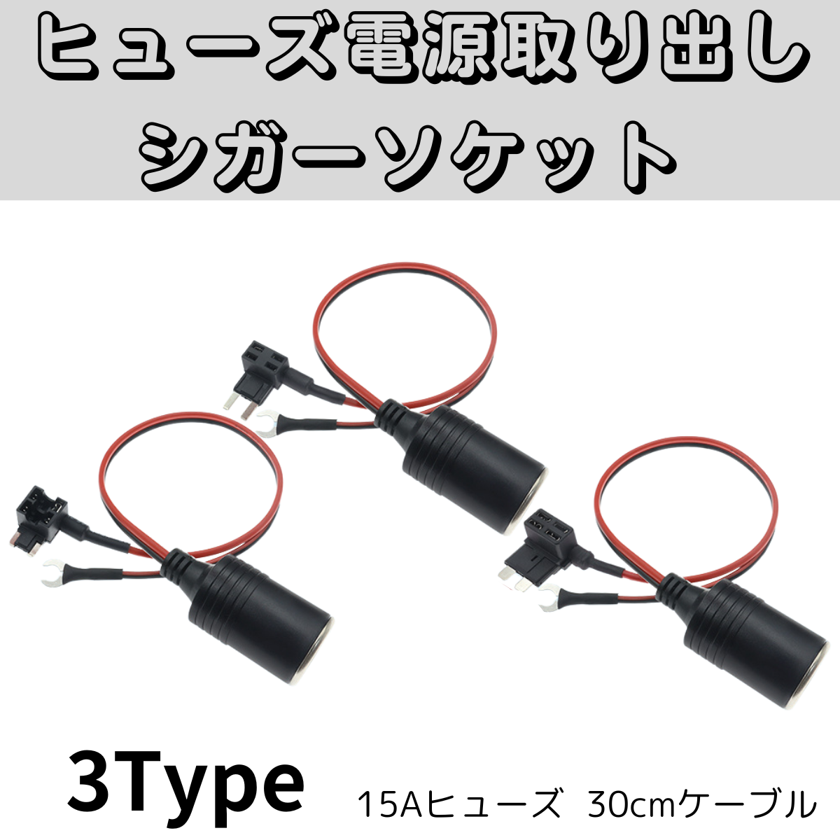 ヒューズ 電源取出し用 シガーソケット 15A 12V 24V 低背 平形 ミニ ロープロファイル ヒューズボックスから電源取り出し ドラレコ電源など 30cmケーブル