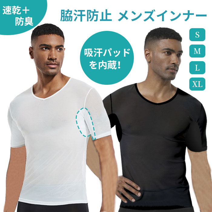 インナーシャツ 脇汗パッド付き tシャツ 半袖 メンズ レディース メッシュ 白 黒 無地 速乾 スポーツ ジム 夏 春 秋 冬 脇汗パッド付き