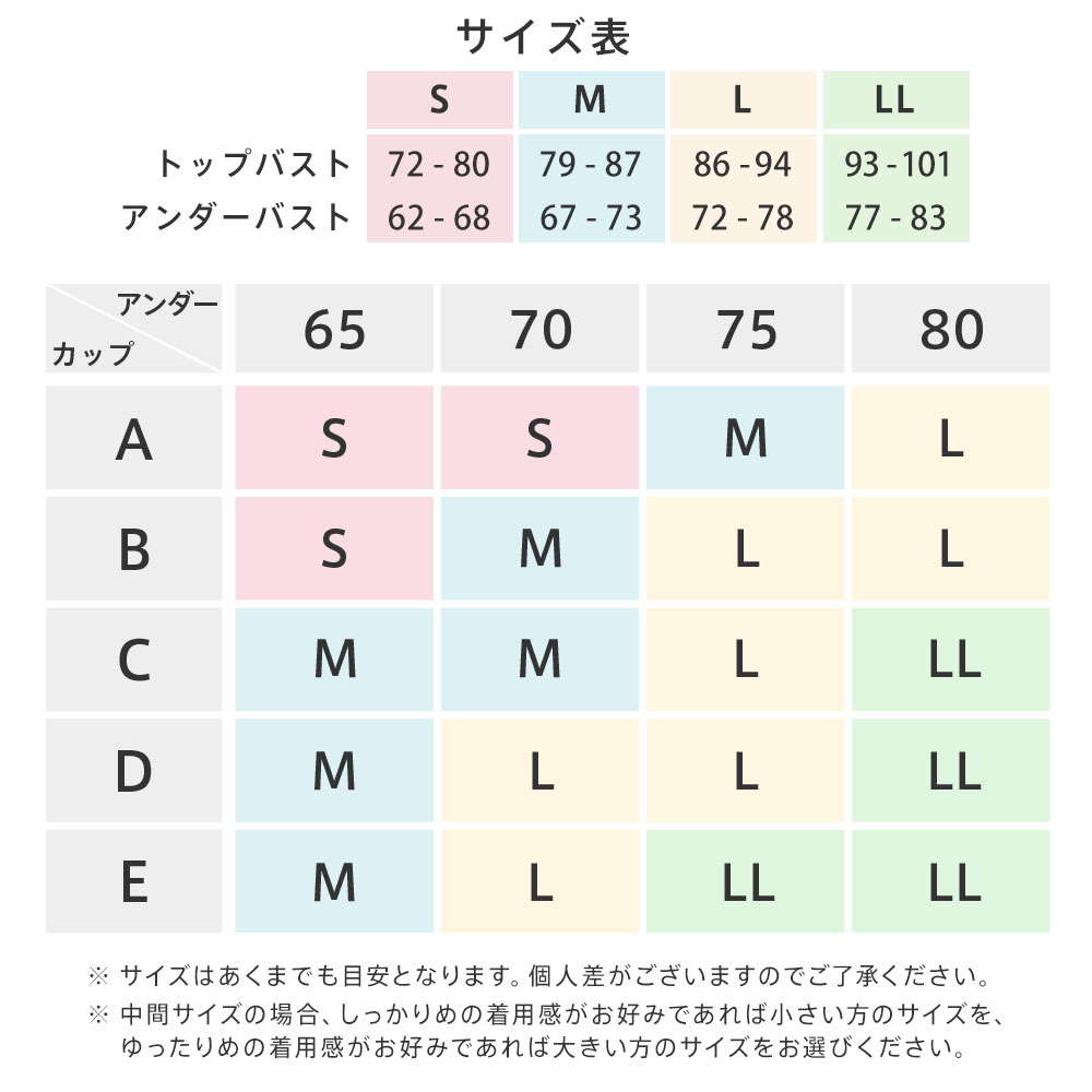 注:対応カップサイズは目安です。