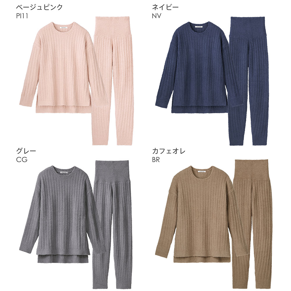 あたたかなモールニット素材を使用した長袖とロングパンツの上下セットです。トップスはお尻が隠れる丈で、体形をカバーしつつ、ボトムスのウエスト部分は腹巻きみたいにおなかが隠れる一体型で寒さ対策もばっちり◎締め付け感ない&長めのモールニットで優しくお腹を包むので、温活にもおすすめのルームウェア。落ち着いたカラー展開でリラックスタイムやパジャマにもピッタリ。