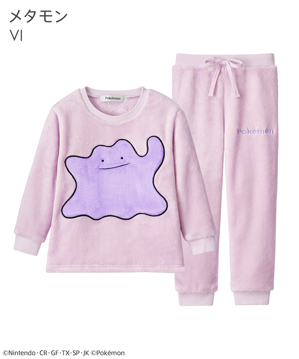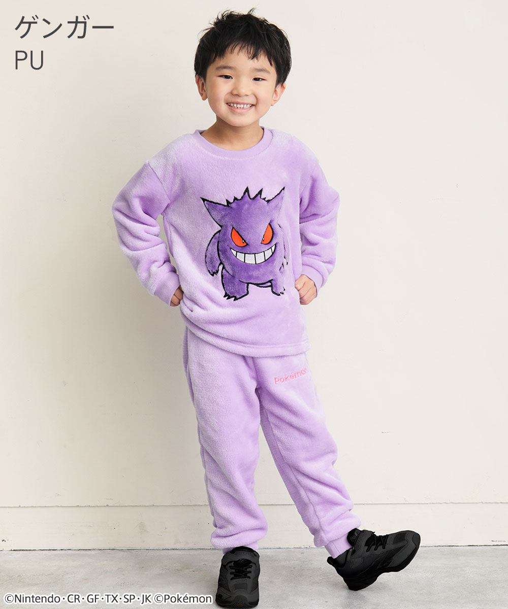 ポケモンから、ゲンガー・メタモン・カビゴン・パモがデザインされた可愛いフリース上下セットが登場!ふわふわで軽くてあたたかいフリース素材は、滑らかな肌触りでおうちでのリラックスタイムにぴったり。トップスにはそれぞれのポケモンたちの姿を大きくあしらい、ボトムスの左足にはロゴを刺繍しました。大人サイズと合わせれば家族でおそろいコーデも可能です。パジャマや部屋着としてはもちろん、ご家族・お友達へのプレゼントにもおすすめのルームウェアです。