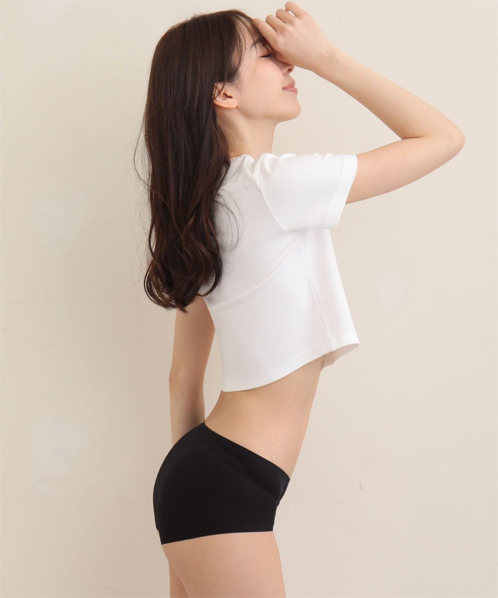 アウターに響きにくく、素肌に馴染むベーシックなプレーンショーツ。ゴムを一切使用せず、跡がつきにくく、締め付け感のないやさしいはき心地が魅力!肌当たりが気になるクロッチ部分は、綿(コットン)100%素材で優しく仕上げているから、デイリーシーンにぴったり。カラーは定番のブラック、透けにくいベビーベージュ、可愛いコーラルピンク・ラベンダー、爽やかなサックス、おしゃれなスモーキーグリーンなどをご用意しました