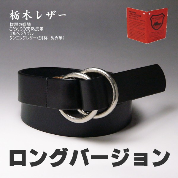 ベルト 栃木レザー 40mm メンズ 本革 ダブルリング バックル 幅40mm ロング ブラック 黒 新品 ヌメ革