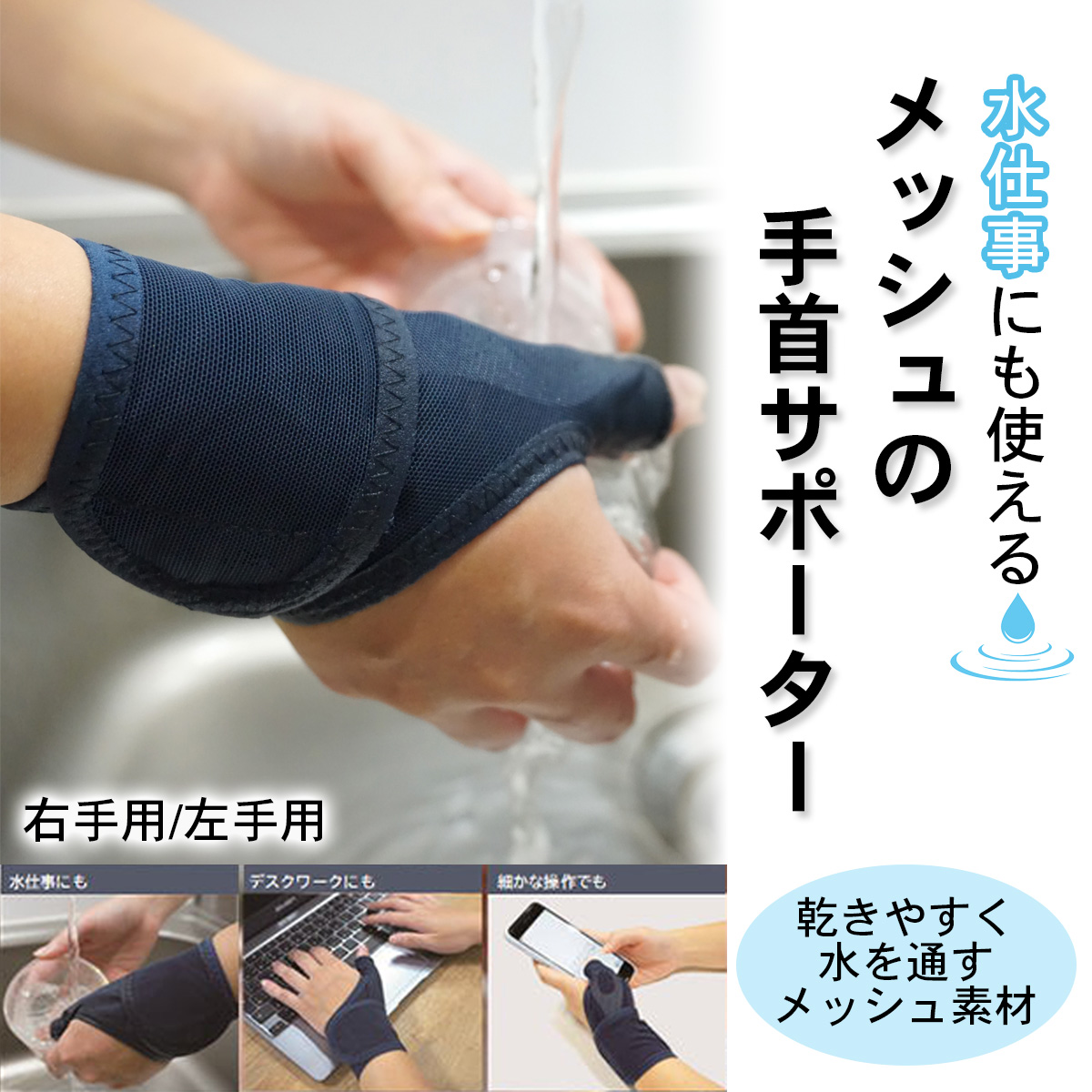 水仕事にも使えるメッシュの手首サポーター 腱鞘炎 速乾 サイズ調整 簡単 装着 炊事 洗い物 デスクワーク 洗える 男性 女性