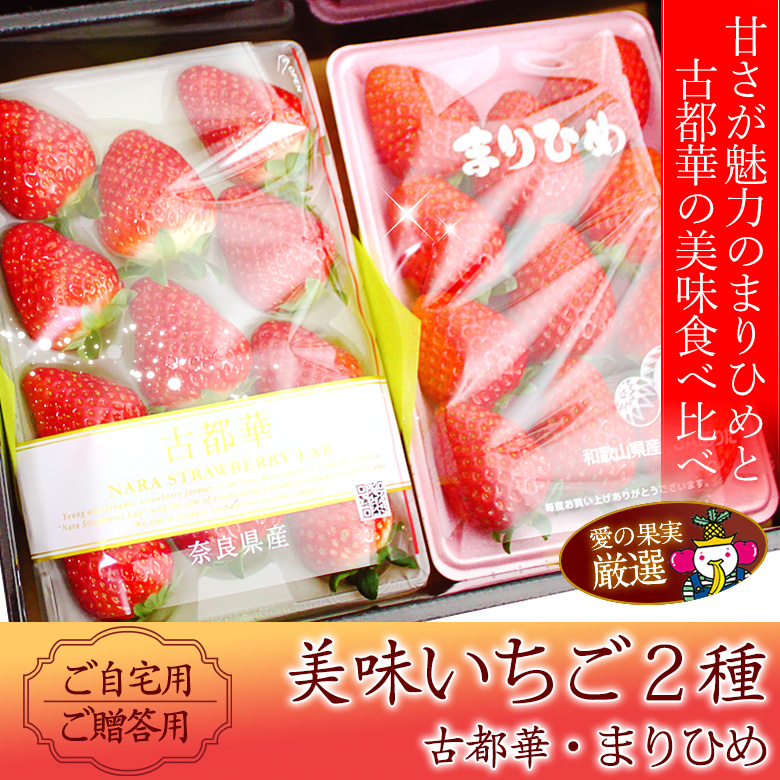 | 商品説明 | 【まりひめ】 和歌山県オリジナル品種「まりひめ」 「まりひめ」という名前は和歌山県の郷土工芸品「紀州てまり」のように親しまれるようにという意味が込められています。味は、酸味より甘みが強く、濃厚な甘さが広がります。果肉の色も濃く、とてもいい香りが広がります。 【古都華】 糖度と酸味が高めで、味わい深い古都華は、赤くツヤのある果皮と香りの良さでも人気です。 「7−3−1」と「紅ほっぺ」を掛け合わせて奈良県農業総合センターが育成した品種で、「古都華」という名前は公募で選ばれました。 |