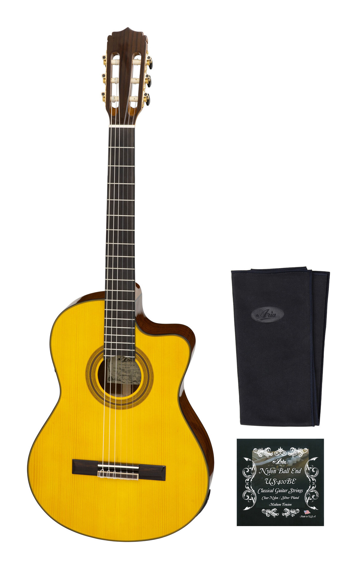 Aria A-35SCE/ケース+スペア弦+クロス付 ピックアップ搭載 エレクトリック クラシックギター エレガット