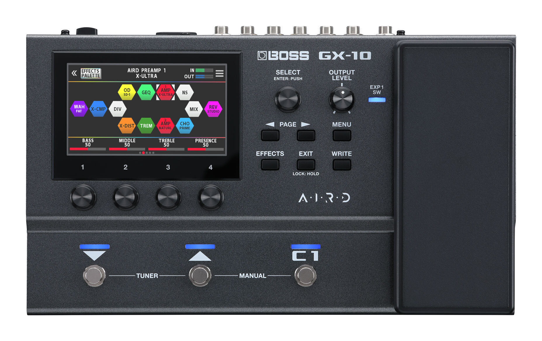 スマートに演奏を彩るポータブル・マルチ・エフェクターモダンでスマートなユーザー・インターフェイスと、優れたサウンドを兼ね備えたBOSSのマルチ・エフェクターGX-100。GX-10は、そのアイデンティティをポータブルなサイズに凝縮しました。独自技術「AIRD」による伸びやかで立体的なアンプ・サウンドや最高峰のアルゴリズムを用いた多数のBOSSエフェクトを内蔵し、タッチ操作に対応したカラー・ディスプレイでスマートなサウンドメイクを実現します。本体3つのフットスイッチは見た目以上のコントロール性を備え、充実したパフォーマンスが可能。ポータブルで堅牢な筐体により、卓上でのレコーディングや練習、スタジオでのセッションからステージでのライブまで、さまざまなシーンで活躍します。小さなサイズでもサウンドにこだわりたい、もっと直感的に操作したい・ギタリストの理想をバランスよく実現したGX-10は、あらゆるプレイヤーにとっての最適解となるはずです。・GX-100と同様のコア・エンジンを継承したポータブルなマルチ・エフェクター・サンプリ