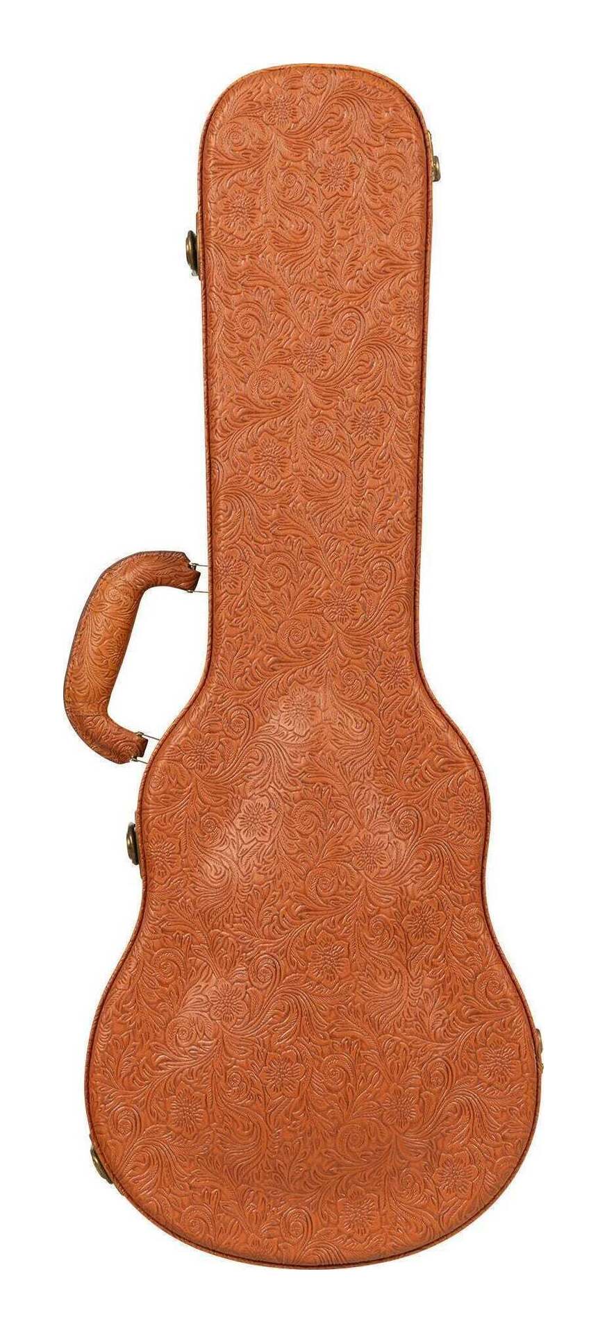 こちらの商品はお取り寄せとなります。3日〜1週間ほどでお届け可能です。メーカー品切の際はお時間を頂きます。※画像は撮影用商品のため、お届けの際の商品とは異なります。ヴィンテージ調のエンボスレザーをあしらったウクレレ用ハードケースWestern Embossed Archtopウクレレハードケースは、堅牢な構造のアーチトップの蓋が衝撃を受けた際に楽器のトップ部分と接触しないように設計されています。クッション付きのハンドルは楽器とケースを快適に持ち運ぶのに最適で、柔らかい内張りは楽器を傷つけたり損傷させたりすることなくしっかりと固定します。アンティーク調のハードウェアと特徴的なエンボス加工のウェスタンスタイルのパターンが、目を惹くヴィンテージ感のあるデザインを演出しています。