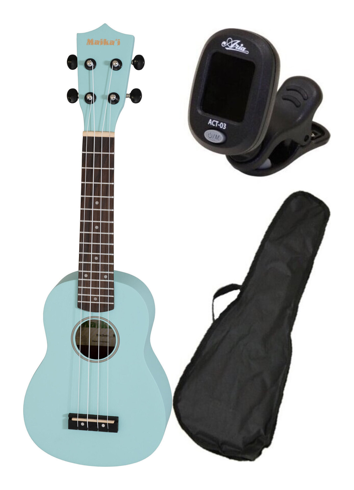 ※画像は撮影用商品のため、お届けの際の商品とは異なります。★セット内容★ 本体:Maika’i MKU-1/LBL(ライトブルー) ソフトケース:付属品 クリップチューナー:ARIA ACT-03 // チューニングがしやすく、安定性の高いギアペグを採用したソプラノウクレレです。ソフトケース付属。Top:FalcataBack&Sides:FalcataNeck:NatoFingerboard:WalnutBridge:WalnutScale:344 mmNut width:38 mmソフトケース付属