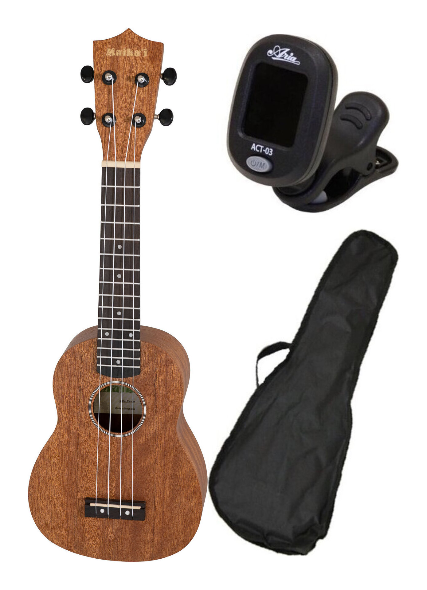 ※画像は撮影用商品のため、お届けの際の商品とは異なります。★セット内容★ 本体:Maika’i MKU-1/SBR(シースルーブラウン) ソフトケース:付属品 クリップチューナー:ARIA ACT-03 // チューニングがしやすく、安定性の高いギアペグを採用したソプラノウクレレです。ソフトケース付属。Top:FalcataBack&Sides:FalcataNeck:NatoFingerboard:WalnutBridge:WalnutScale:344 mmNut width:38 mmソフトケース付属