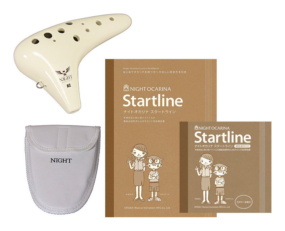 楽器経験のない方、楽譜が苦手な方を対象に、初歩の初歩をご説明した「NIGHTオカリナスタートライン」の教則本と、補助教材としてのCDが付属した入門セットです。[セット内容]・オカリナ・ケース・教則本「NIGHTオカリナスタートライン」・補助教材CD[NIGHT CLASSIC(クラシック)]オカリナを始めたいとお考えの方に、最初に手にしていただきたいオカリナです。リーズナブルでありながら、全音域バランスの取れた調律が施され、安定した吹きやすさで初心者に最適です。ここから始まるオカリナライフをお楽しみください。累積生産数量200,000本を超えてご愛顧いただいた「NIGHTスタンダルド」の後継機種としてリニューアルいたしました。<リニューアルポイント>吹き口を細い設計に変えてより吹きやすくしました。歌口の形状をより厳格な基準にすることで高音の抜けが良好になりました。食品衛生法上の安全基準を通過した塗料を全面的に使用しているので安心してお使いいただけます。