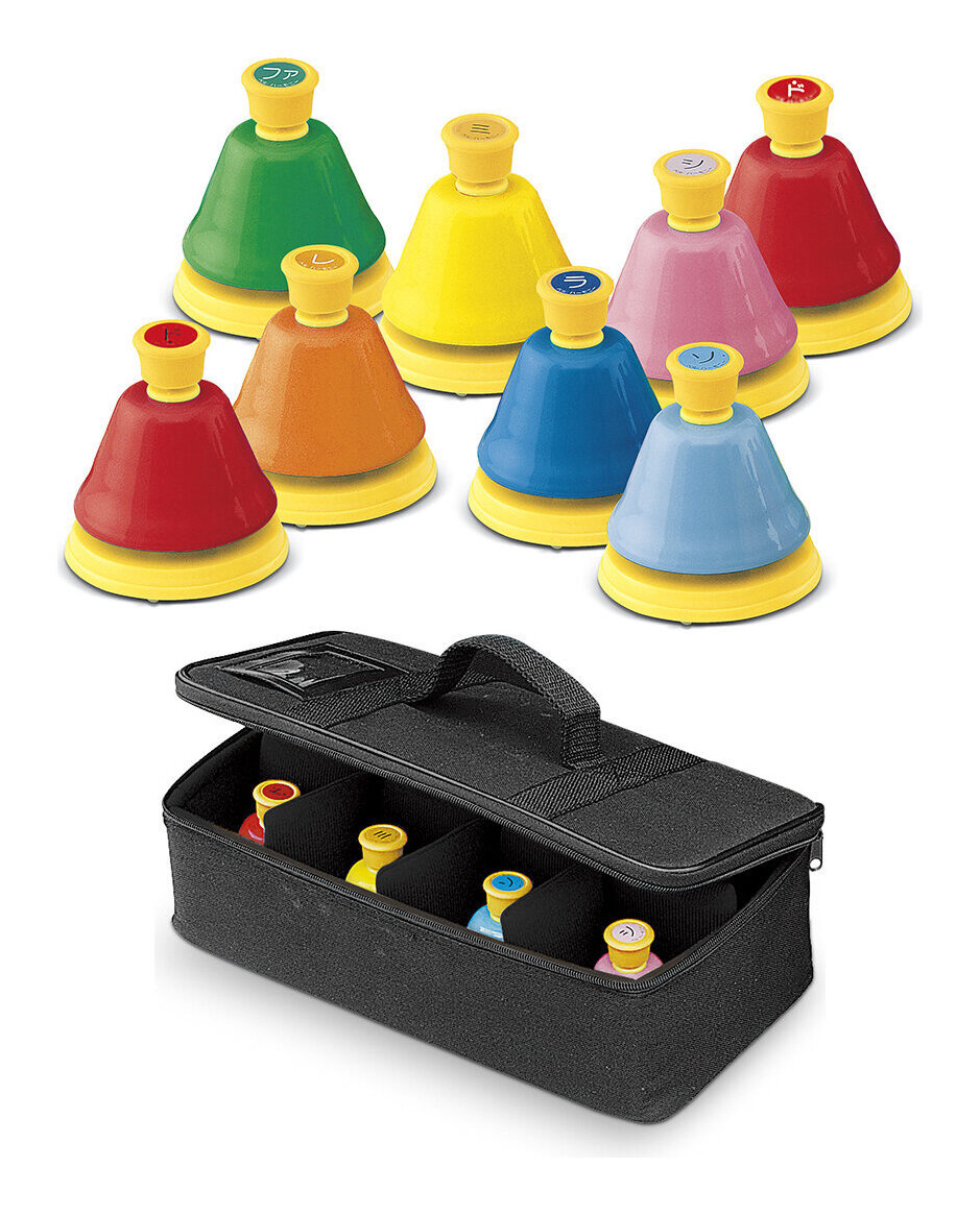 こちらの商品はお取り寄せとなります。3日〜1週間ほどでお届け可能です。メーカー品切の際はお時間を頂きます。こちらの商品は一部の地域*を除き送料無料(送料込)です。*離島地域・北海道・沖縄へのお届けは別途、送料が必要になりますので、ご注文の前にご連絡下さい。送料をお知らせいたします。 ★セット内容★ ◆本体:SUZUKI MBD-8 ◆専用ケース:SUZUKI BCD-8基本セットベルハーモニー デスクタイプ(幹音)MBD-8ベルハーモニー・デスクタイプ全音域2オクターブの中心になる、1オクターブ幹音のみの8音セットです。概要机などの上に置き、キャップを叩いて演奏するベルです。置き方を工夫することで様々な演奏が可能で、動きやあそびの要素を取り入れやすいでしょう。また、ベルを持ち替える必要が無いので、一人でより多くの音を演奏できます、複数の楽器を担当しても良いでしょう。特長ベルハーモニーとは?色で音が分かるベルがセットにベルハーモニーは音別に色分けされたベルがセットになっています。ベルの色と音の関係は図の通りです。 幹音は単色、派生音は2トーン幹音はベルの色が単色で柄やキャップの色が黄色。