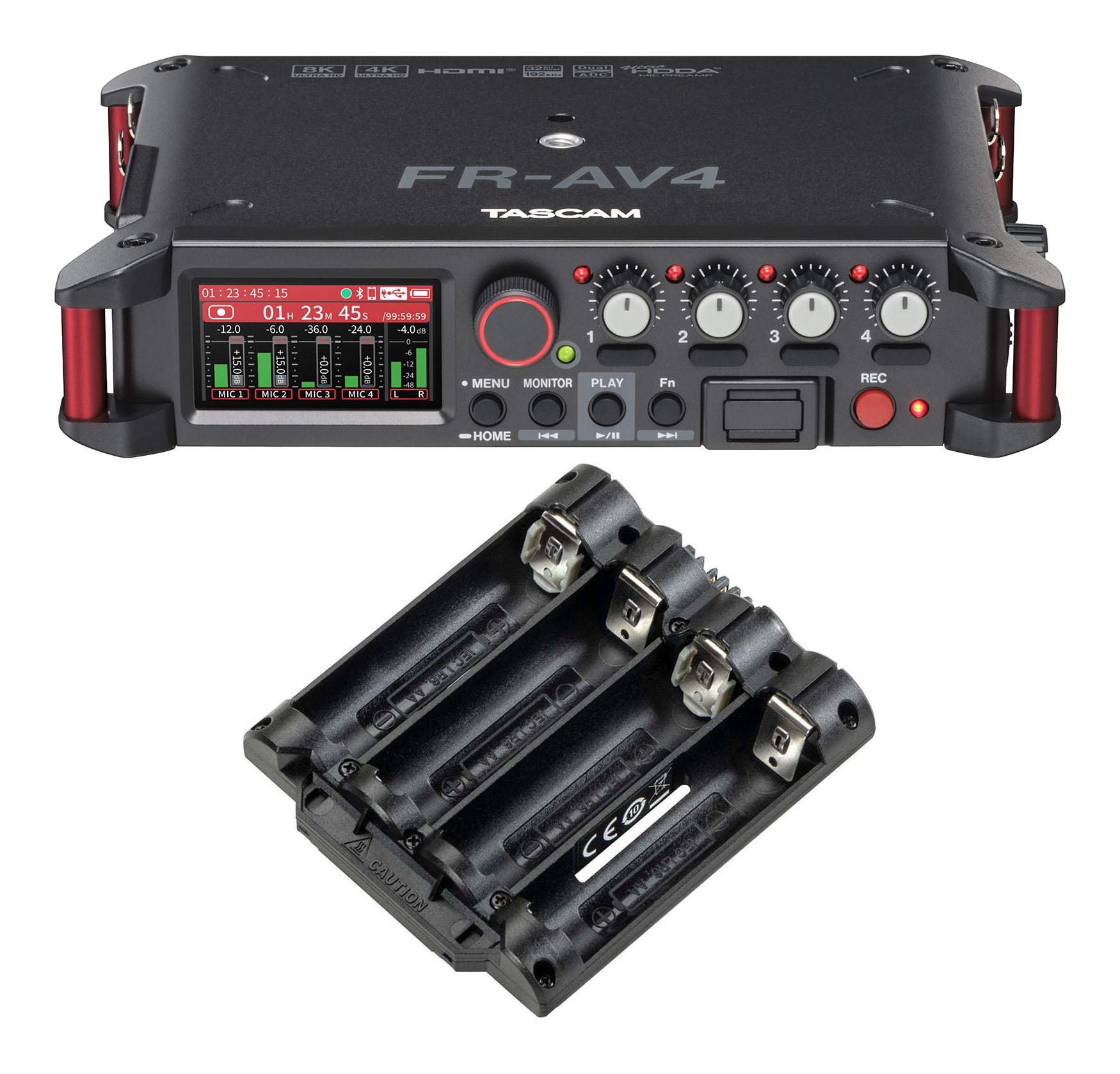 TASCAM FR-AV4+BH-4AA タスカム 32ビットフロート録音 HDMI Sync対応 4chフィールドレコーダー ミキサー タイムコードジェネレーター/追加バッテリーホルダー付