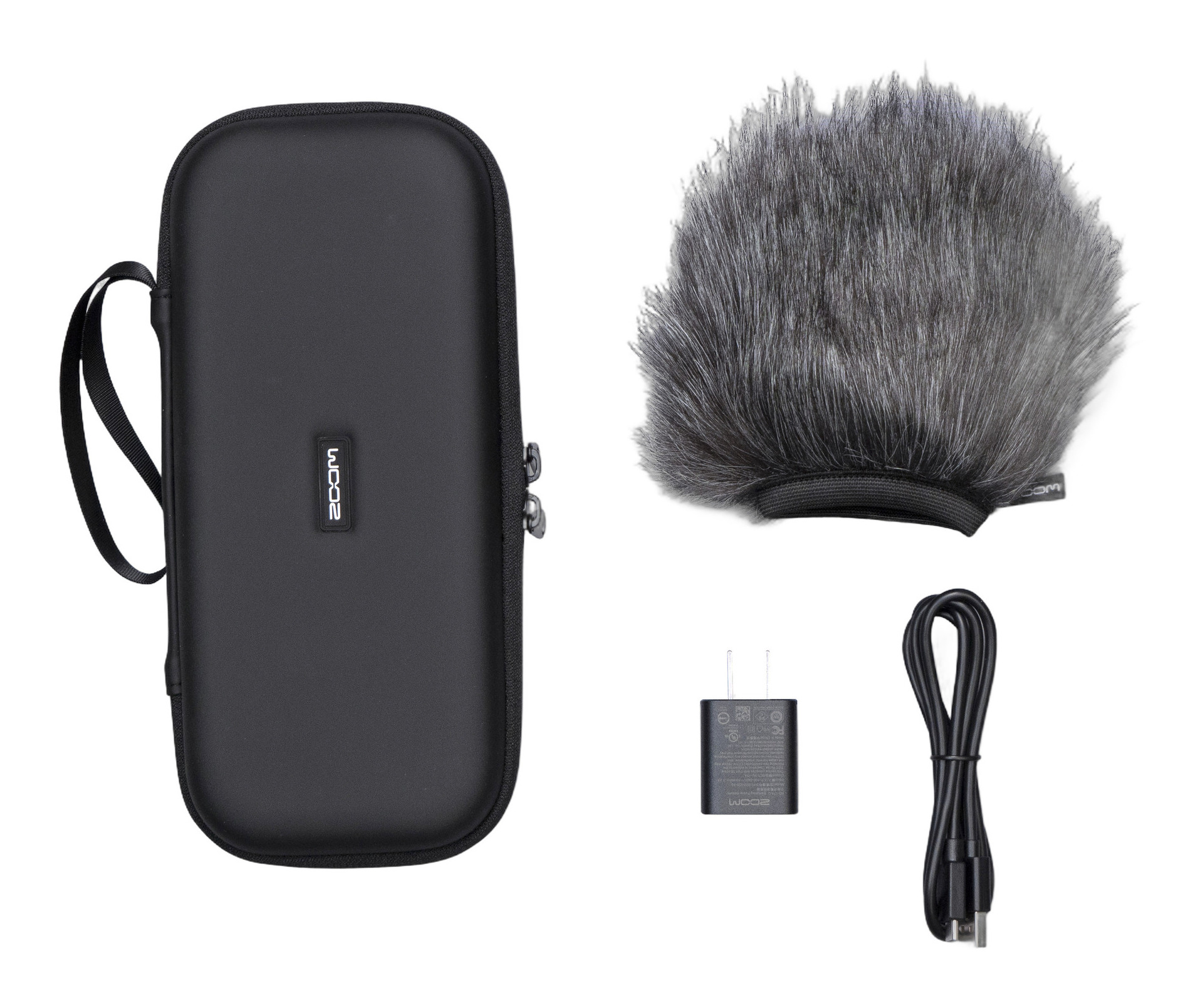 H6studio専用アクセサリパックAccessory Pack for H6studio屋外に持ち出したり、パソコンと接続したり、ハンディレコーダー『H6studio』をよりアクティブに利用するクリエイターのためのマストハブアイテムを揃えた、専用アクセサリパックです。APH-5s_Hairy_Windscreen:屋外でのレコーディングには欠かせない、風によるマイクの吹かれを防止するH6studio付属XYステレオマイクカプセル専用設計のヘアリーウィンドスクリーン(WSH-5s)。APH-6st_Case:レコーダーを傷や衝撃からしっかり保護する、持ち運びに便利な専用ソフトシェルケース。H6studio本体と一緒に、単3電池、ACアダプタ、USBケーブル、microSDカード、イヤフォンなどのアクセサリを入れて持ち運ぶことができます。APH-5s_AD-17-Adapter:バッテリー残量を気にせずに長時間使用できるUSB-ACアダプタ(AD-17)、パソコンおよびiPhone/iPad*に接続してファイル転送やUSBオーディオインターフェース機能が利用できるUSB-Cケーブルも同梱。*Lightningコネクタを搭載したiPhone/iPadと接続するには、Lightning-US