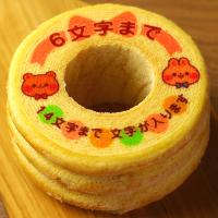 米粉、生クリームを加えた独自の製法で、一層一層を丁寧に焼き上げたソフトタイプのバウムクーヘンです。ケーキの側面は凹凸のあるマウントタイプで、外はカリッ、中はしっとりふんわり食感。ケーキの上に、大切な方のお名前を名入れしてお届けいたします。