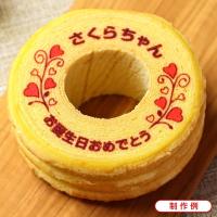 バウムクーヘンは、見た目が木の年輪のように見えることから、昔からご長寿やご結婚など、お目出たいお祝いの贈り物として人気の高いお菓子です。お祝い・プレゼントに オリジナルメッセージお菓子