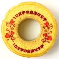 ●●●●●の箇所にメッセージをお入れいたします。バウムクーヘンに入れるメッセージは、ご注文時にコメント入力欄へご記入ください。