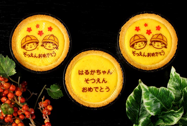 ダブルのチーズが香るしっとりした食感のタルトは、お子様にも大人の方にも、おいしくお召し上がりいただけます。お子様、お孫様、甥御様、姪御様のご卒園のプレゼントに、世界に一つだけの名入れのオリジナルスイーツをどうぞご利用ください。
