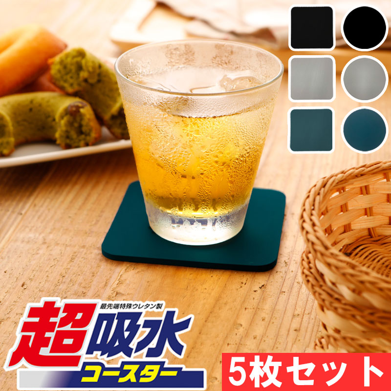 メーカー公式 アイオン 超吸水コースター 5枚セット 家庭用 グラス コップ 水滴 結露 ブラック ダークブルー ライトグレー メール便配送で送料無料