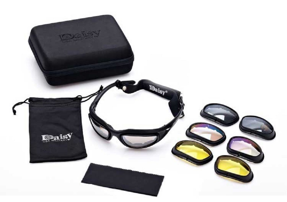 Daisy C5 偏光軍事用サングラス 4枚入りセット 策戦用防弾・UV防止の射撃グラス サバゲー バイク用ゴーグル シューティングゴーグル