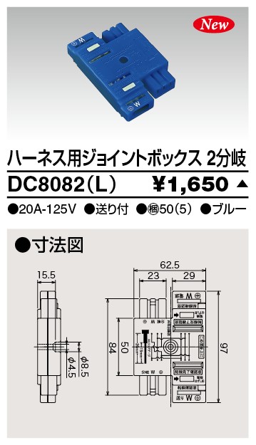 (受注生産品) ハーネス用ジョイントボックス2分岐青 DC8082(L) 東芝ライテック (DC8082L)