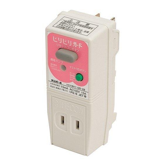 (送料無料) 設置極付プラグ形漏電遮断器 ビリビリガード ピンク 地絡保護専用 GRXB1515P テンパール