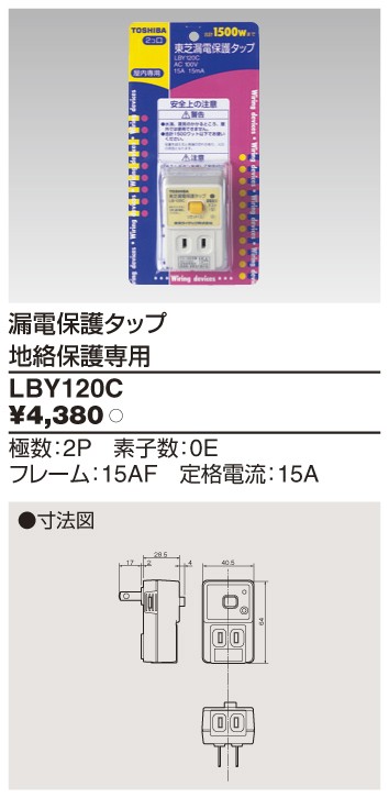 漏電保護タップ LBY-120C 東芝ライテック 住宅電気設備 (LBY120C)