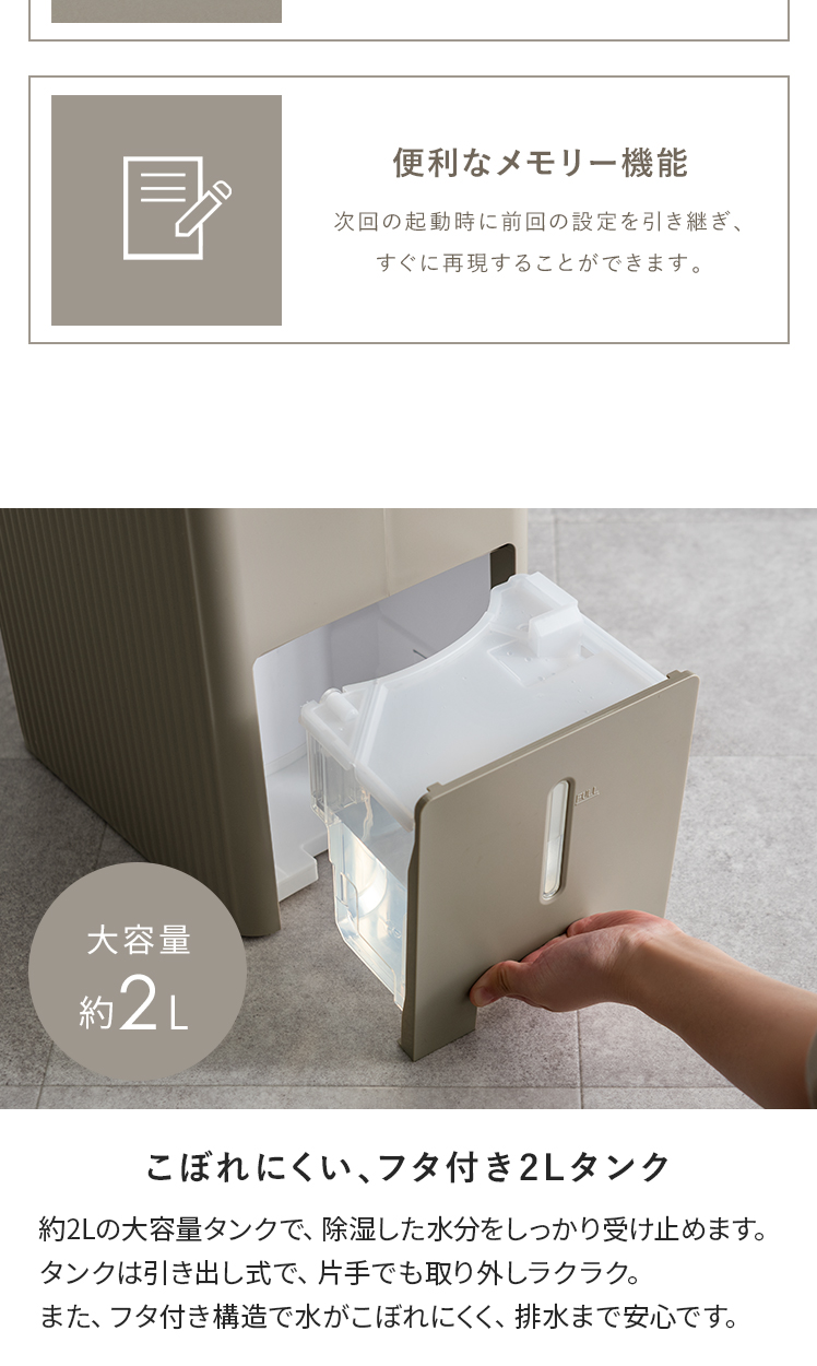 | タンク容量 | 約2L(約2Lで自動停止) |