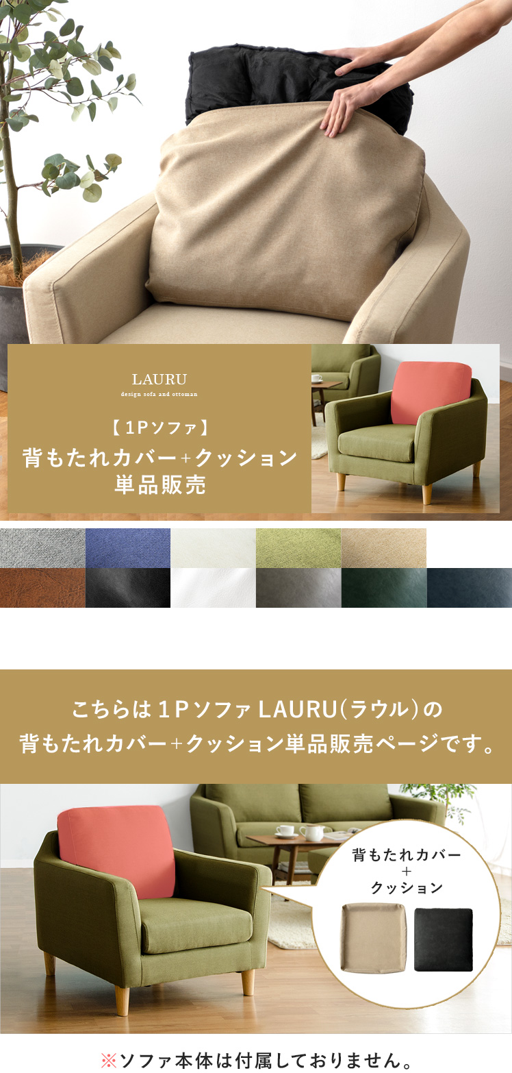 【備考】※1PソファLAURU(ラウル)の 背もたれカバー+クッション単品販売です。