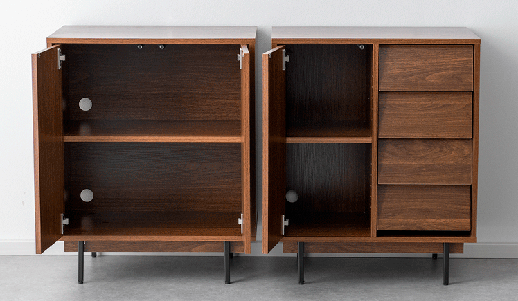 【材質】合成樹脂化粧合板(メラミン、PVC)、プリント紙化粧繊維板、スチール(粉体塗装)