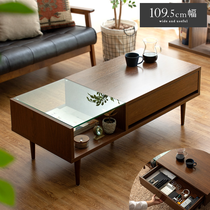 ローテーブル テーブル リビングテーブル おしゃれ センターテーブル 北欧 モダン ナチュラル ガラステーブル 収納付き 引き出し 長方形 110cm幅