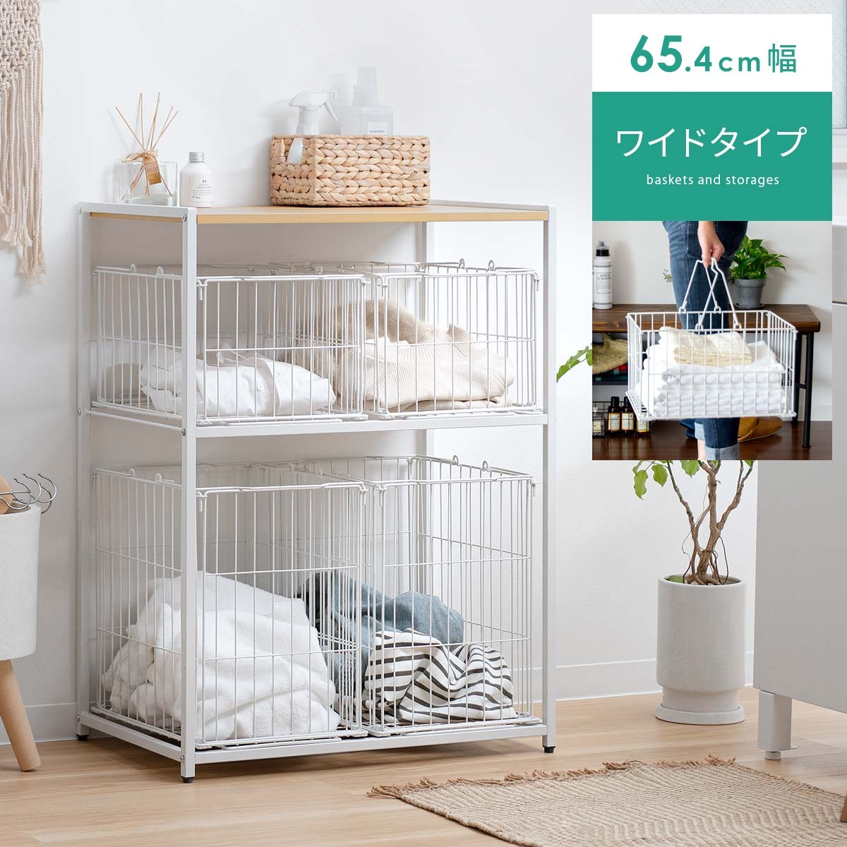 【バスケット収納(ハイタイプ)】外寸/約幅29.6×奥行き40.5×高さ41cm、内寸/約幅27.5×奥行き38×高さ39cm