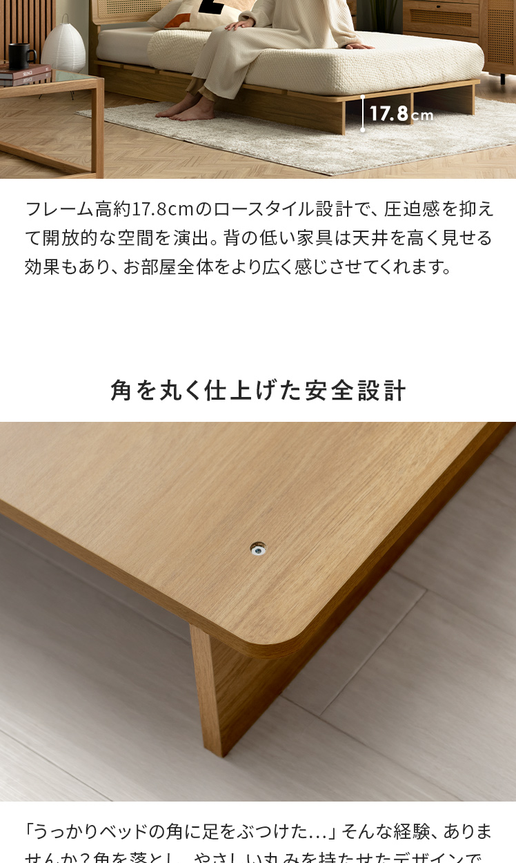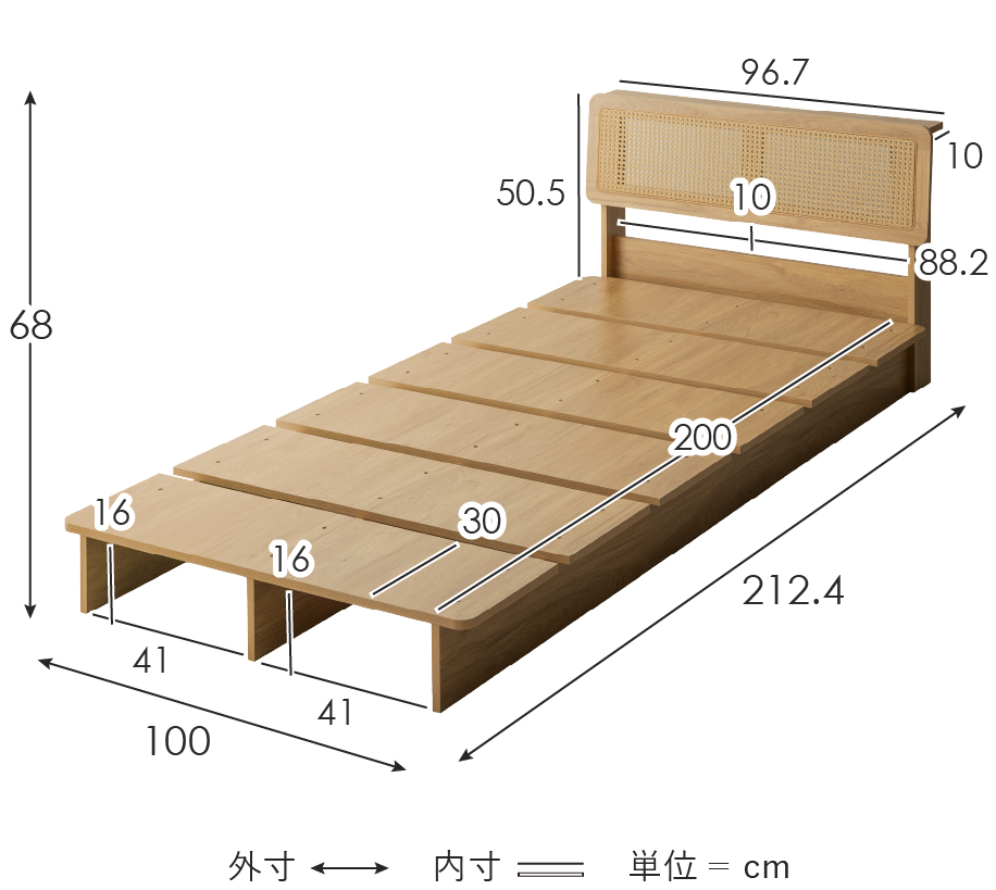 | ベッドサイズ | 約幅100×奥行き212.4×高さ68cm |